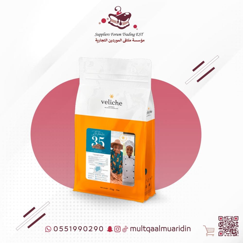 شوكولاته فيليتشي طعم خرافي لايتقارن تستخدم في صناعة الحلويات والكوكيز والمخبوزات نسبة الكاكاو 35٪ نسبة زبدة الكاكاو 36٪ نسبة الحليب 21.8٪